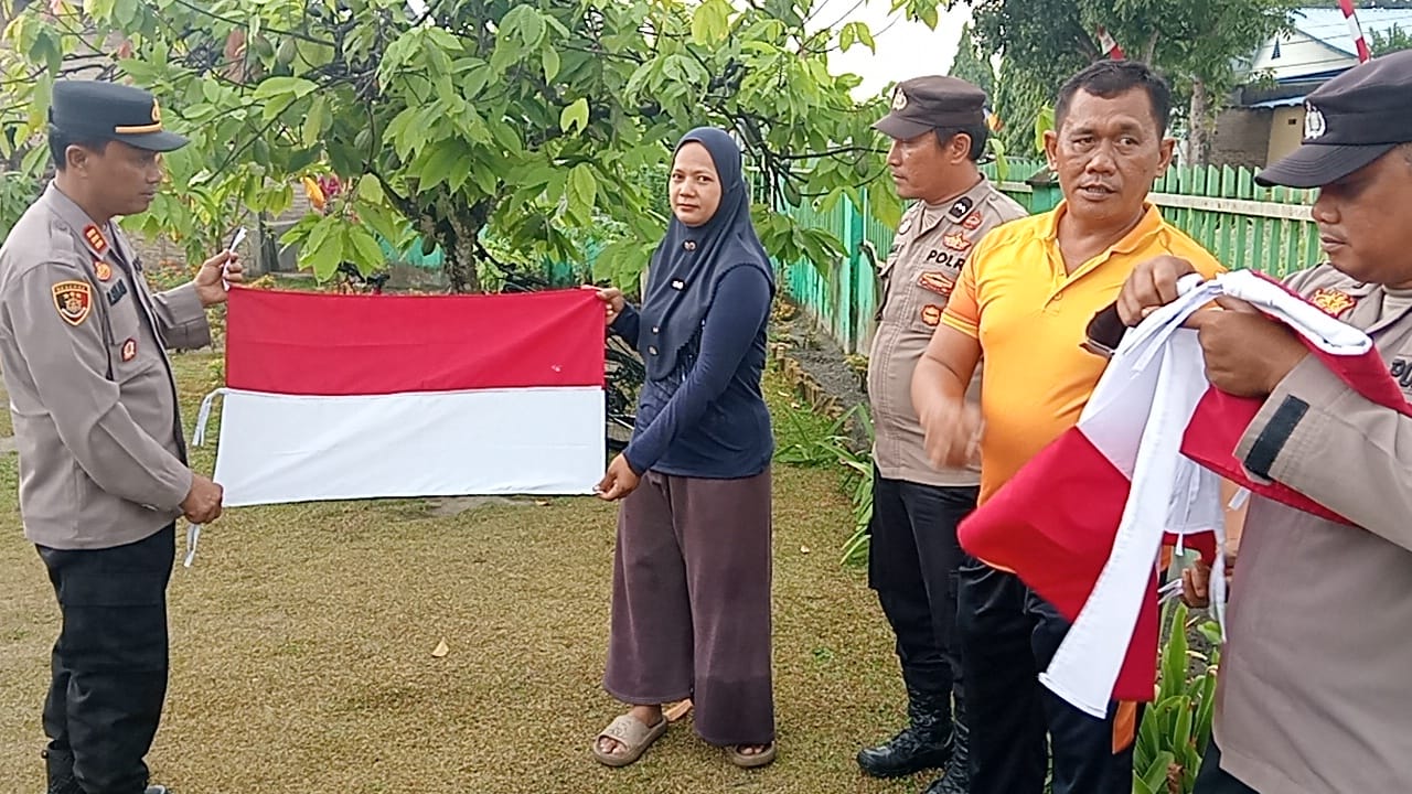 Sambut HUT RI ke-80, Polsek Indrapura Bagikan dan Pasang Bendera Merah Putih