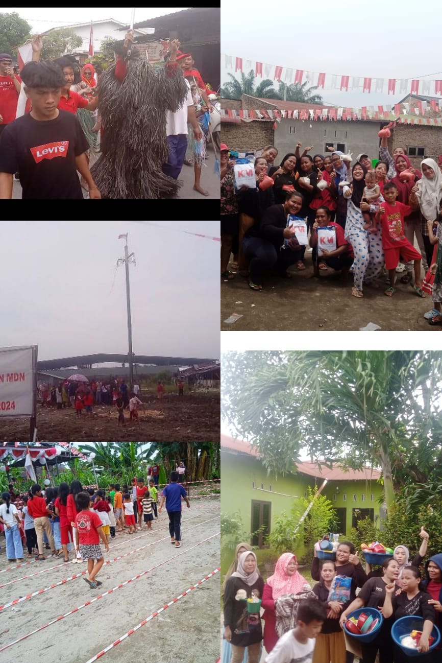 Suasana perayaan Hari Ulang Tahun (HUT) ke-80 Kemerdekaan Republik Indonesia di kawasan Mabar Hilir, Medan, berlangsung meriah berkat dukungan PT Kawasan Industri Medan (KIM). Warga setempat merasa bangga atas perhatian perusahaan yang turut memfasilitasi pesta rakyat berupa berbagai perlombaan, Minggu (17/8/2025).