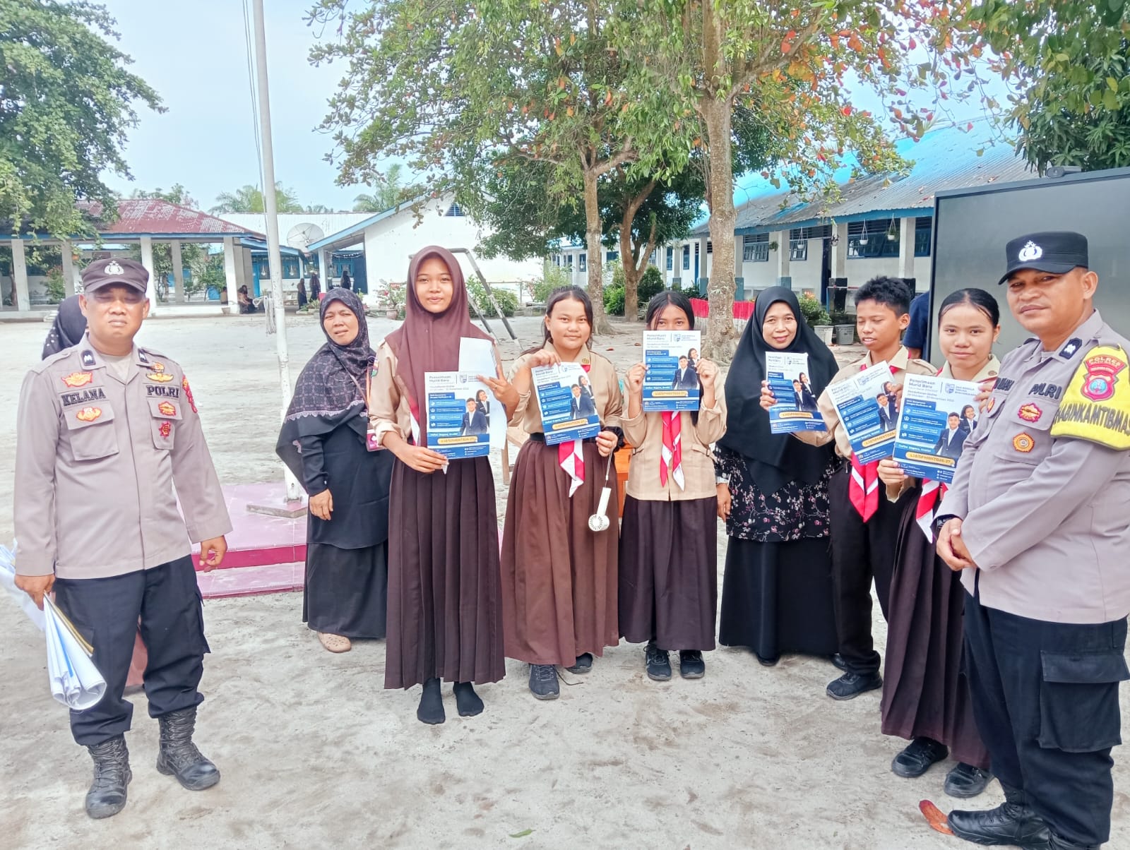 Sebagai bentuk dukungan terhadap sosialisasi, petugas juga membagikan brosur penerimaan murid baru kepada para siswa yang hadir.
