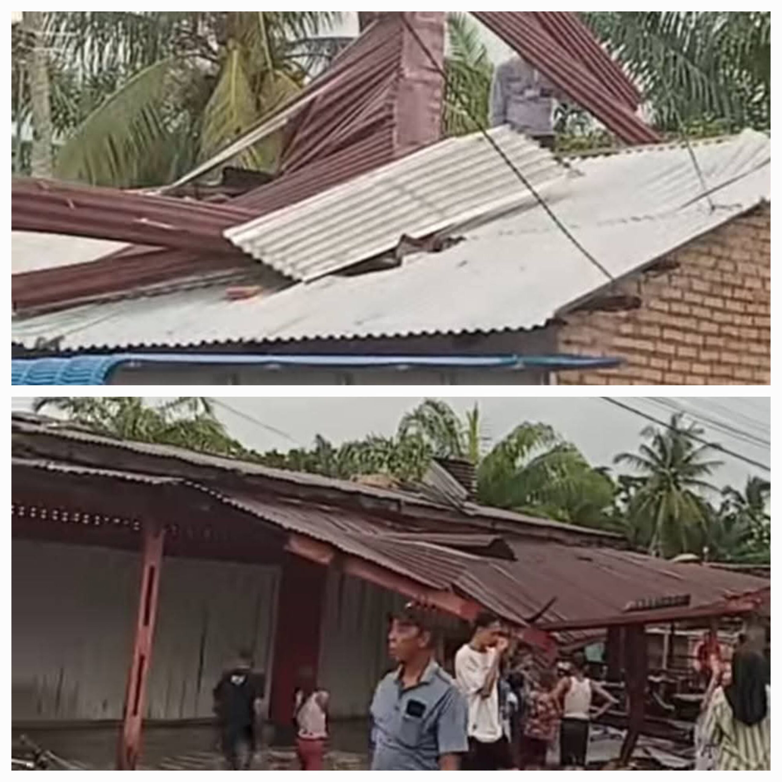 Hujan deras yang disertai angin puting beliung menerjang wilayah Kecamatan Lima Puluh Pesisir, Kabupaten Batu Bara, pada Sabtu petang (22/11/2025) sekitar pukul 14.20 WIB, mengakibatkan tiga rumah warga di dua desa mengalami kerusakan setelah bagian atap bangunan terlepas dan beterbangan.