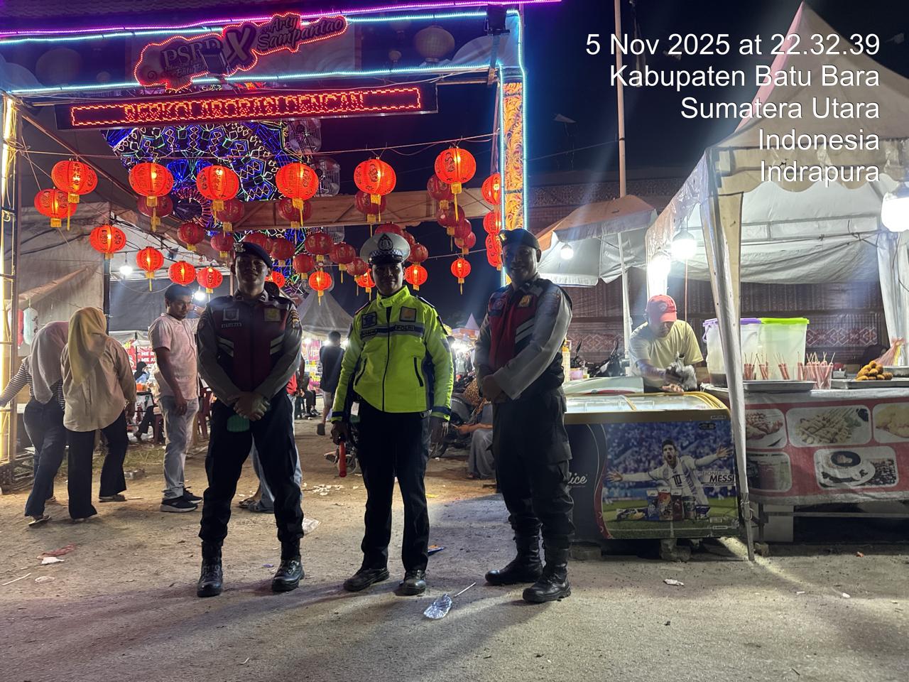 Dalam rangka menjaga keamanan dan ketertiban masyarakat, personel Satuan Samapta Polres Batu Bara melaksanakan kegiatan Cooling System serta patroli di lokasi acara Pekan Seni Budaya Daerah (PSBD) dan area Pasar Malam di Lapangan Bola Kaki Indrapura, Kecamatan Air Putih, Rabu malam (5/11/2025).