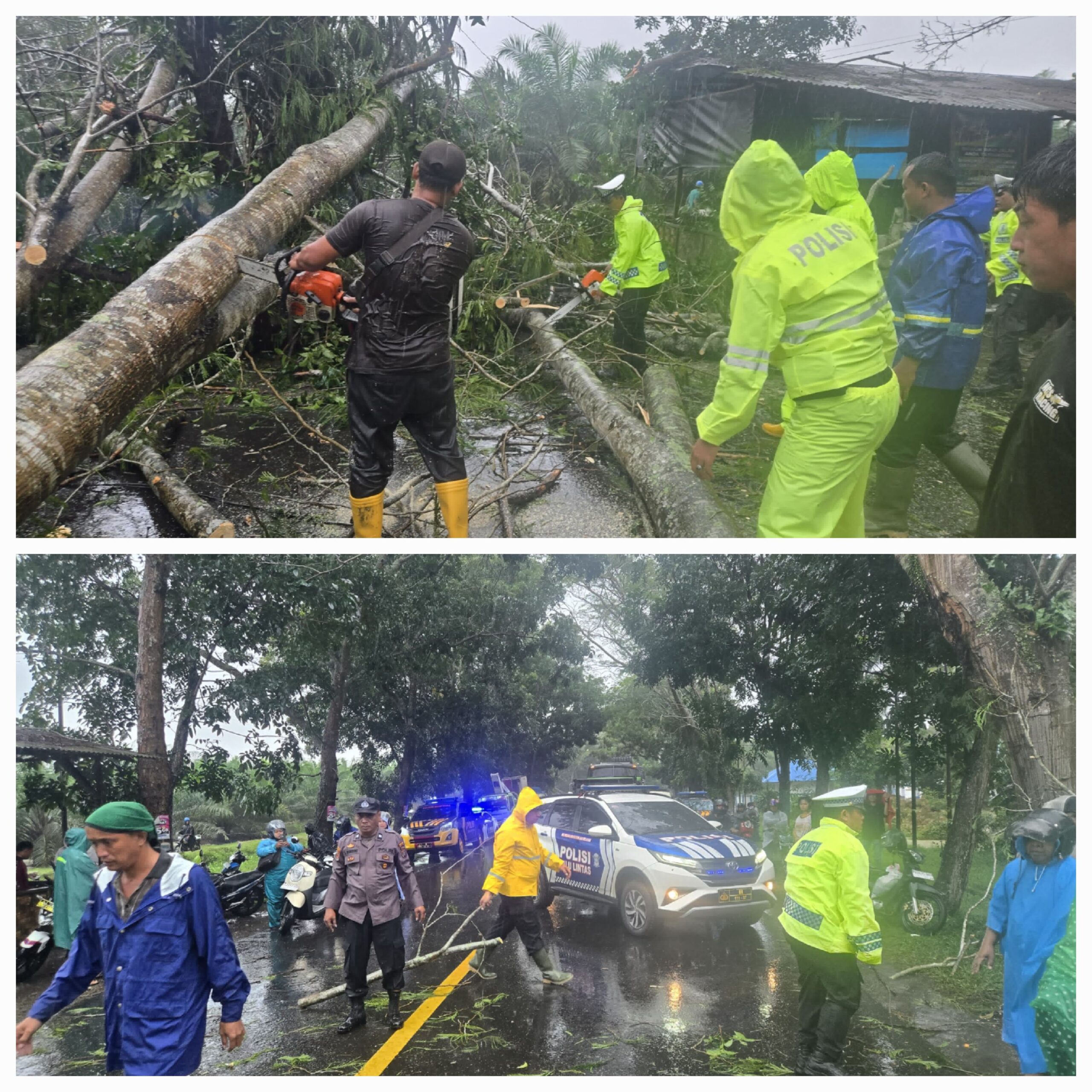 Satlantas Polres Batu Bara Gelar Patroli Antisipasi Kemacetan Akibat Banjir dan Pohon Tumbang di Jalinsum