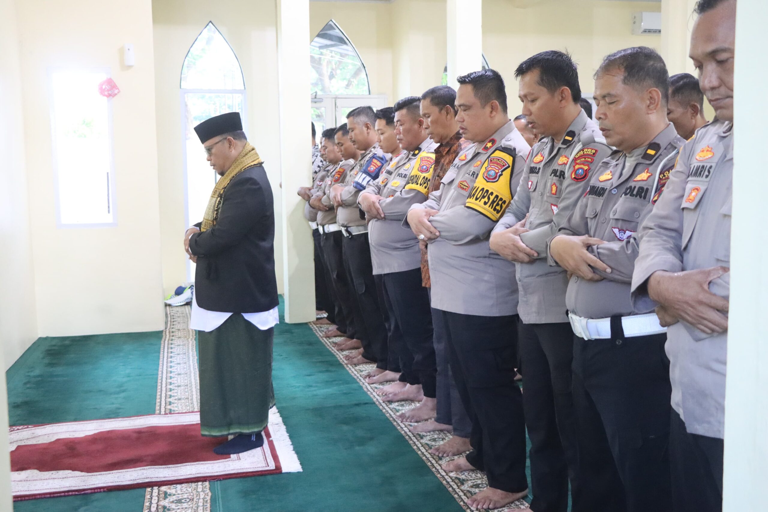 Shalat Ghaib dilaksanakan di Musholla Polres Batu Bara untuk personel beragama Islam.