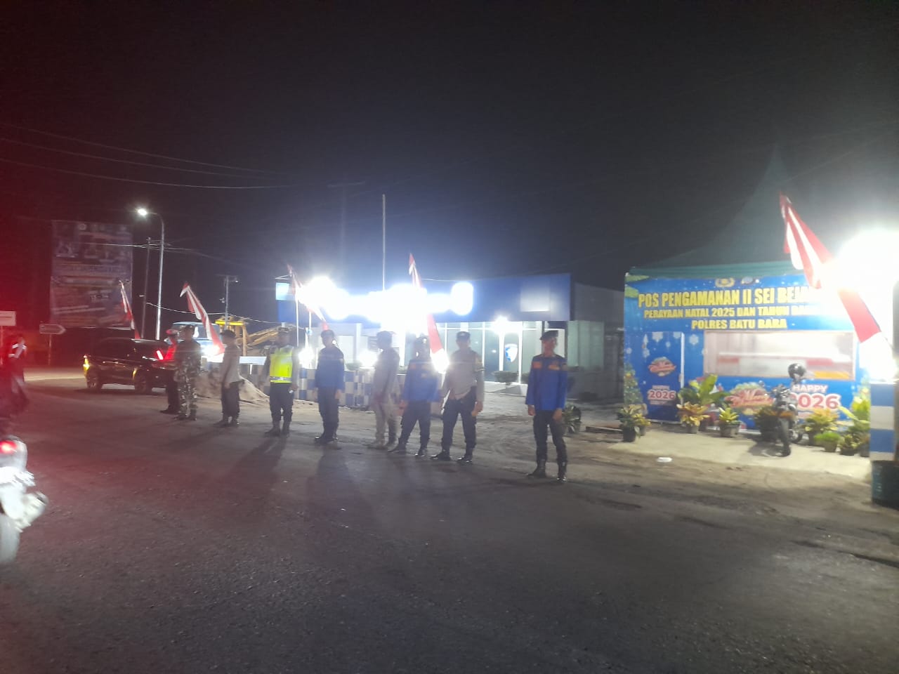Pos Pam II Sei Bejangkar Polres Batu Bara Laksanakan Pengaturan Lalu Lintas Malam dalam Operasi Lilin Toba 2025