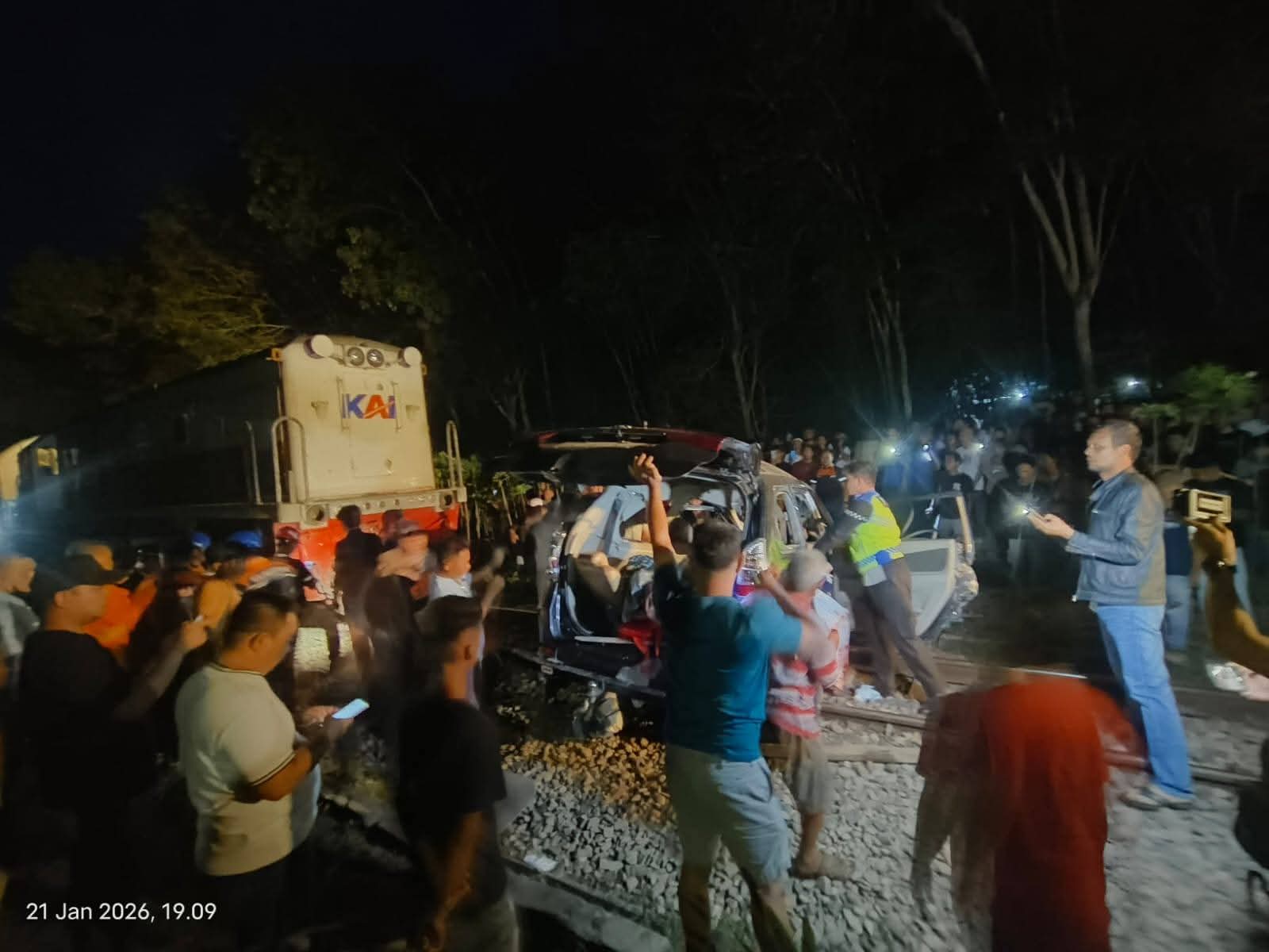 Peristiwa kecelakaan lalu lintas yang merenggut banyak korban jiwa terjadi di perlintasan kereta api tanpa palang pintu di Lingkungan III, Kelurahan Tebing Tinggi, Kecamatan Padang Hilir, Kota Tebing Tinggi, Rabu (21/1/2026) sekitar pukul 18.30 WIB.