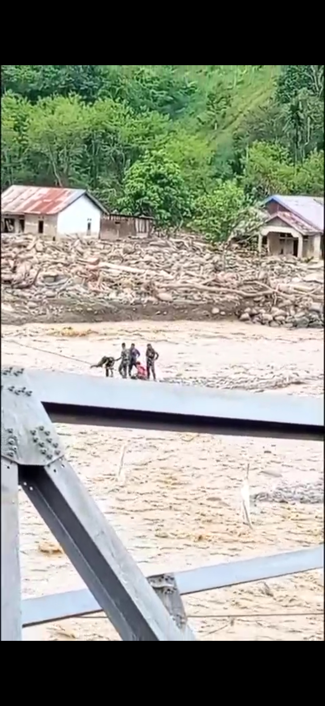 Menyaksikan peristiwa tersebut, tiga prajurit TNI AD yang berada tidak jauh dari lokasi langsung bertindak cepat. Tanpa ragu, mereka terjun ke sungai untuk memberikan pertolongan dan melakukan evakuasi terhadap korban.