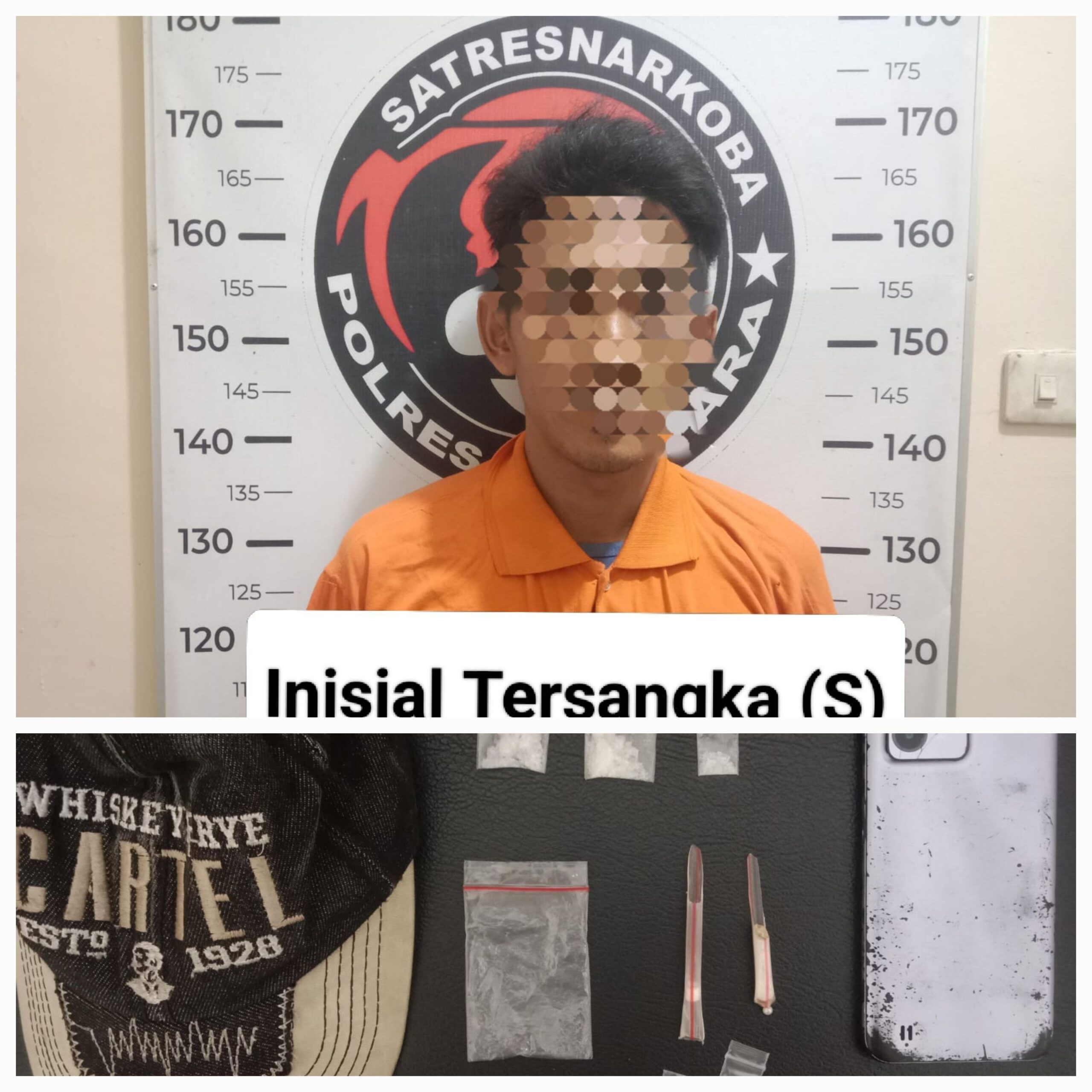 Selain itu, turut disita plastik klip kosong berbagai ukuran, dua pipet yang telah dimodifikasi menjadi skop, sebuah topi, serta satu unit telepon seluler merek Redmi yang diduga berkaitan dengan aktivitas tersangka.
