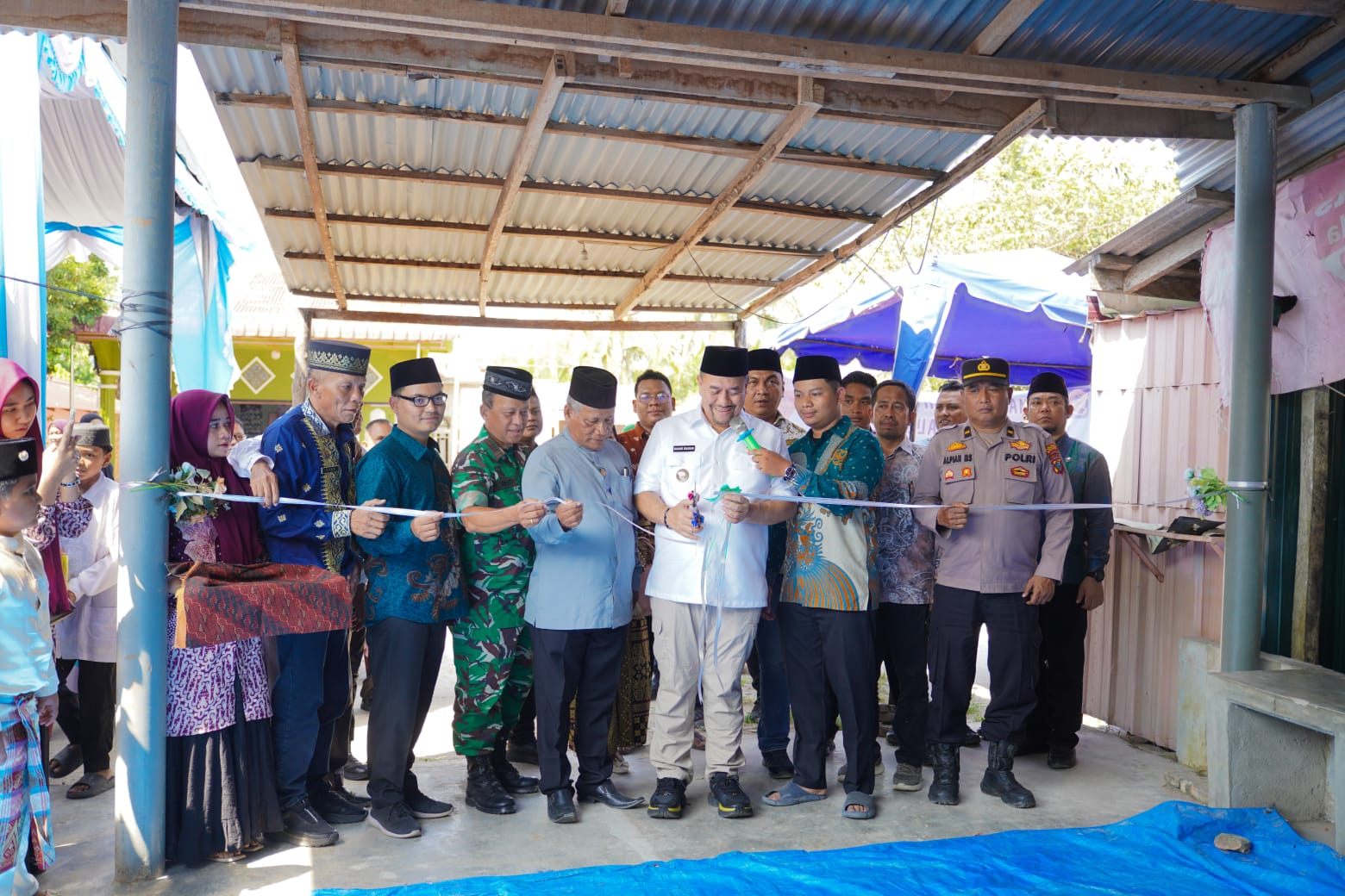 Rangkaian acara diawali dengan penyerahan santunan kepada masyarakat, kemudian dilanjutkan dengan prosesi pemotongan pita sebagai simbol diresmikannya Rumah Tahfiz Qur’an Al-Mahalli Center.