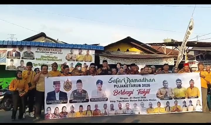 Dalam rangka menyemarakkan bulan suci Ramadan 1447 Hijriah, Dewan Pimpinan Pusat (DPP) Paguyuban Jawa Keturunan Nusantara Bersatu (Pujaketarub) bersama Pengurus Anak Cabang (PAC) Kecamatan Medan Deli menggelar kegiatan berbagi takjil kepada masyarakat yang melintas di Jalan KL Yos Sudarso, Medan, Minggu (1/2/2026).