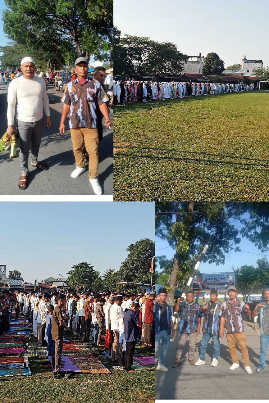 Aksi positif ditunjukkan puluhan kader Ikatan Pemuda Karya (IPK) Ranting Mabar Hulu saat pelaksanaan Sholat Idul Fitri 1447 Hijriah. Sejak pukul 06.00 WIB, mereka telah bersiap di lokasi guna membantu kelancaran kegiatan ibadah yang berlangsung di lapangan Pasar II, Kelurahan Mabar, Kecamatan Medan Deli, Sabtu (21/3/2026).