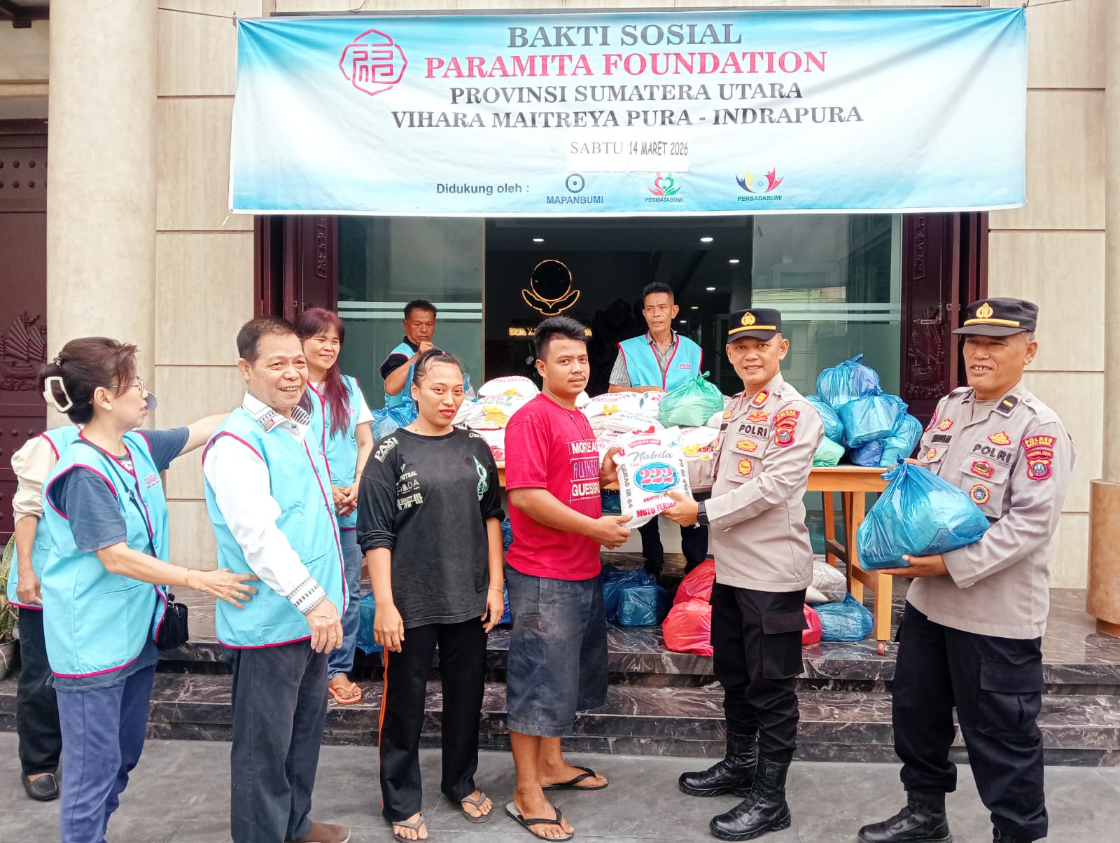 Dalam rangka menyambut Hari Raya Idulfitri 1447 Hijriah, Kapolsek Indrapura menggelar kegiatan bakti sosial dengan membagikan ratusan paket sembako kepada masyarakat yang membutuhkan. Kegiatan tersebut berlangsung di Vihara Maitreyapura Indrapura, Jalan Jenderal Sudirman No. 40 Jalinsum, Kelurahan Indrapura, Kecamatan Air Putih, Kabupaten Batu Bara, Sabtu (14/3/2026).