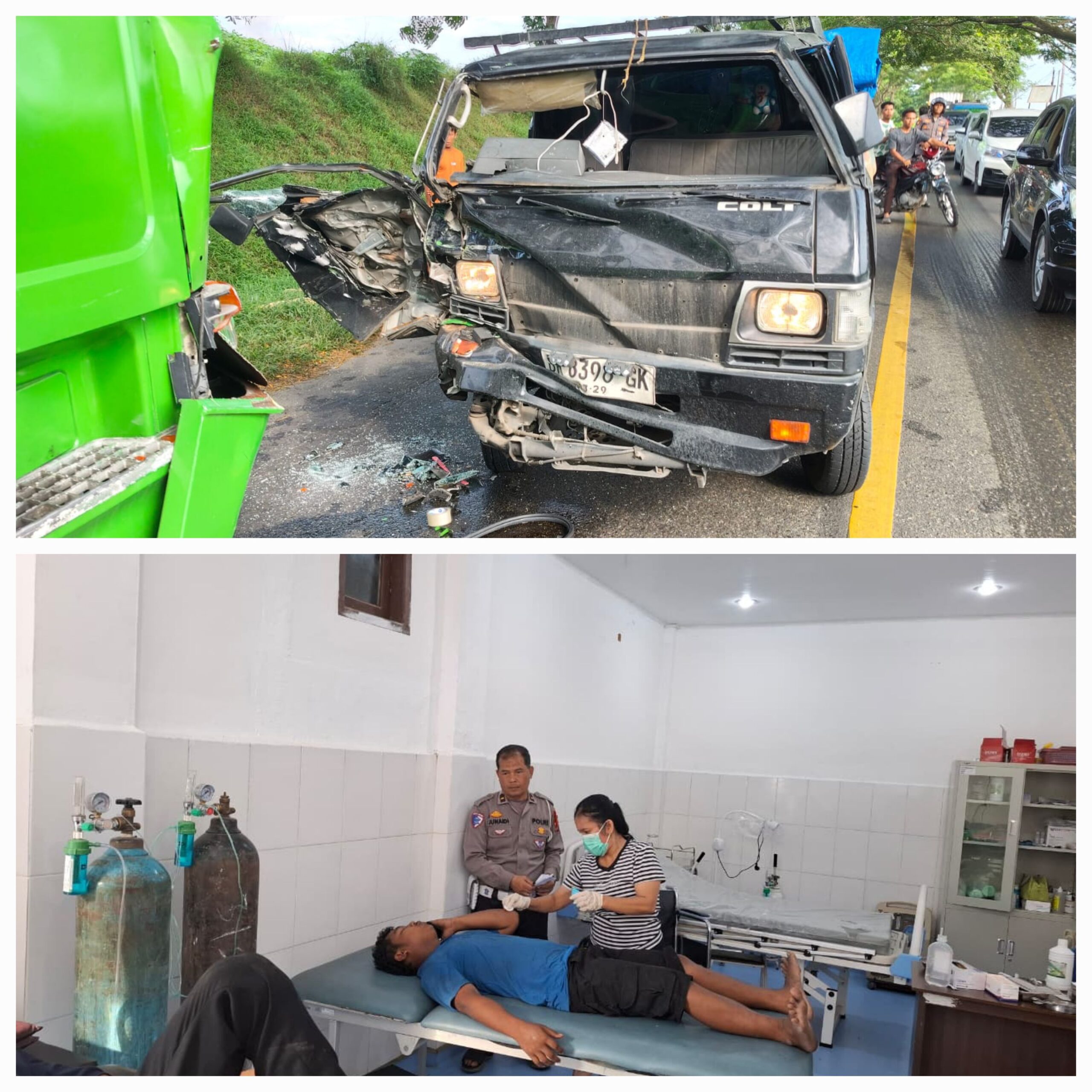 Insiden tersebut melibatkan satu unit mobil pick up dan mobil tangki tronton yang bertabrakan dari arah berlawanan. Akibat peristiwa tersebut, dua orang mengalami luka-luka dan kerugian materi diperkirakan mencapai sekitar Rp10 juta.