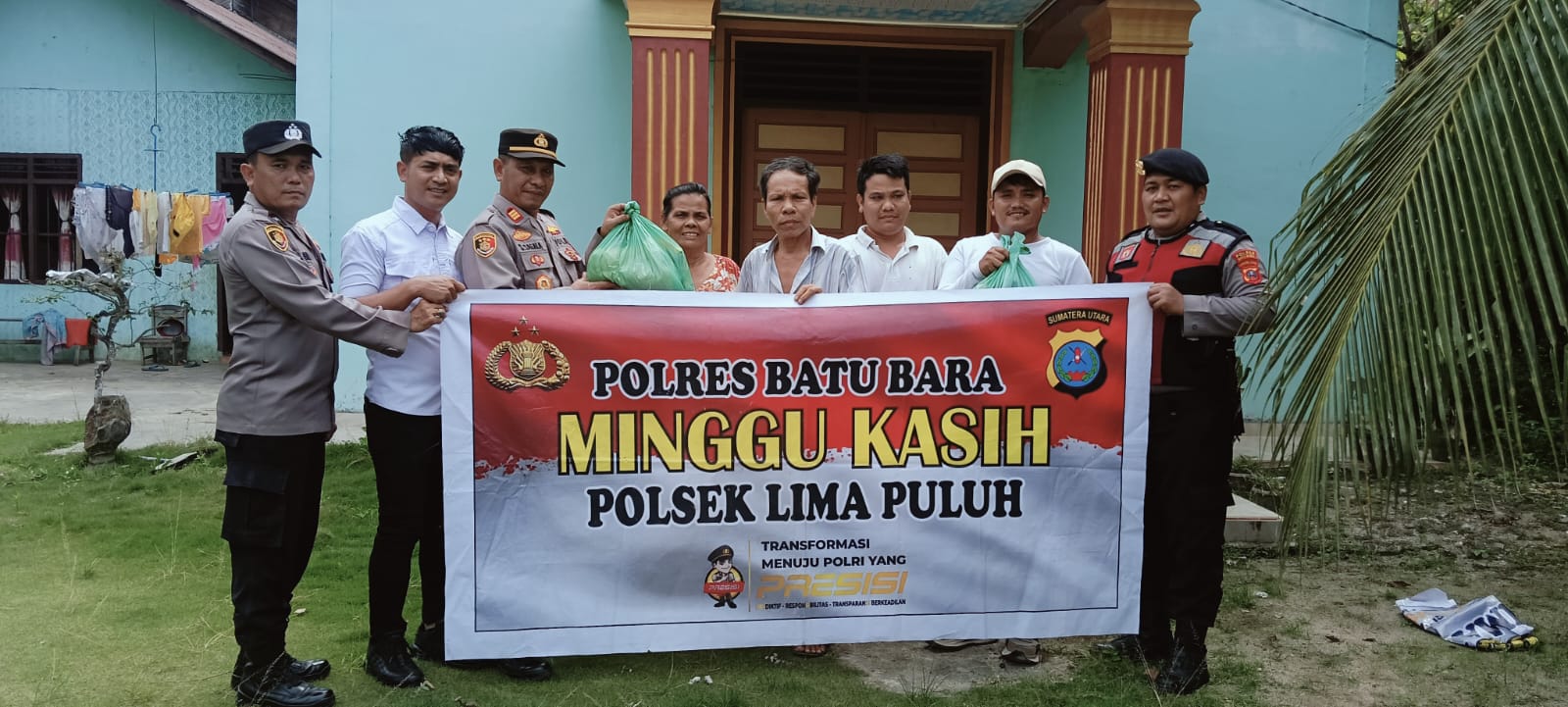 Kepolisian Sektor (Polsek) Lima Puluh melaksanakan kegiatan Minggu Kasih dengan menyalurkan bantuan sosial kepada masyarakat, Minggu (19/4/2026) sekitar pukul 11.00 WIB.